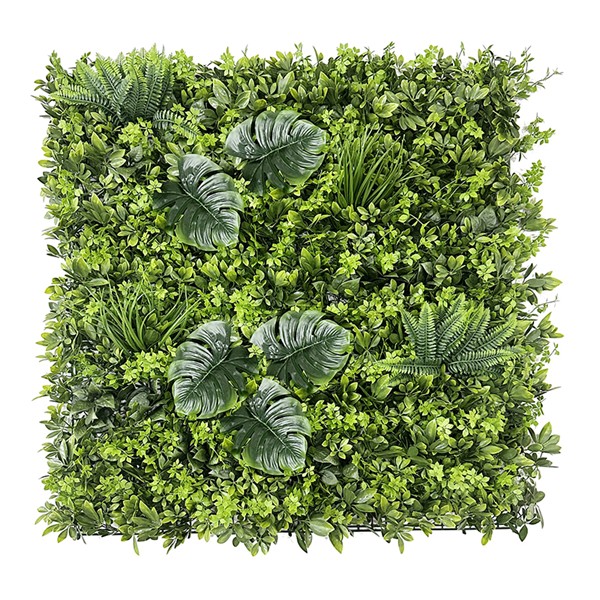 Συνθετικό διακοσμητικό πάνελ με πυκνή φυλλωσιά, σε πλακίδιο 1m x 1m. Έχει τρισδιάστατη όψη και δίνει μια αίσθηση ζωντάνιας και φυσικότητας στον χώρο σας. Διακοσμήστε τον εξωτερικό ή εσωτερικό χώρο σας με τα πάνελ φυλλωσιάς και δημιουργήστε έναν μοναδικό κάθετο κήπο.