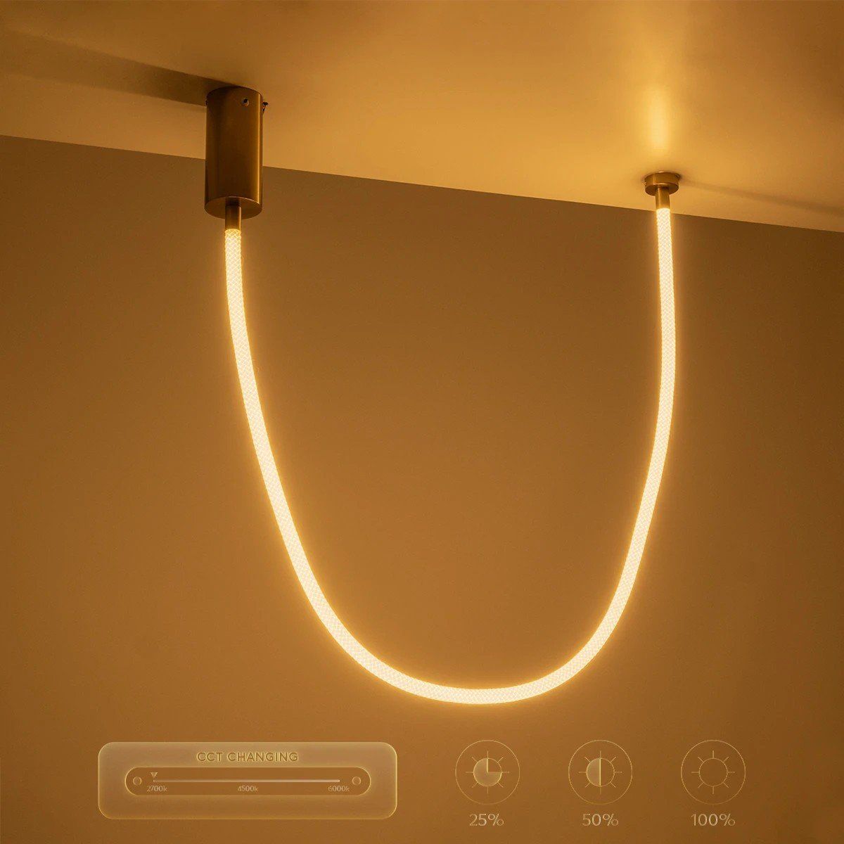 kelvo® GLOW KLV-101-0155 Κρεμαστό Φωτιστικό Οροφής LED 27W 2700lm 360° AC 220-240V IP20 Ρυθμιζόμενο Λευκό CCT με Χειριστήριο από 2700K έως 6000K Dimmable – Lumileds SMD Chip – Χρυσό Πλατίνα – Μ90 x Π9 x Υ95cm – 3 Χρόνια Εγγύηση