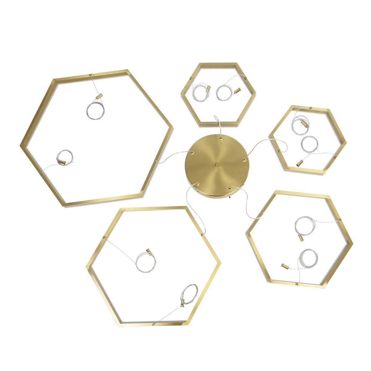 kelvo® LEXAGON KLV-101-0180 Κρεμαστό Φωτιστικό Οροφής LED 120W 12000lm 200° AC 220-240V IP20 Ρυθμιζόμενο Λευκό CCT με Χειριστήριο από 2700K έως 6000K Dimmable – Lumileds SMD Chip – Χρυσό Πλατίνα – Μ110 x Π90 x Υ110cm – 3 Χρόνια Εγγύηση
