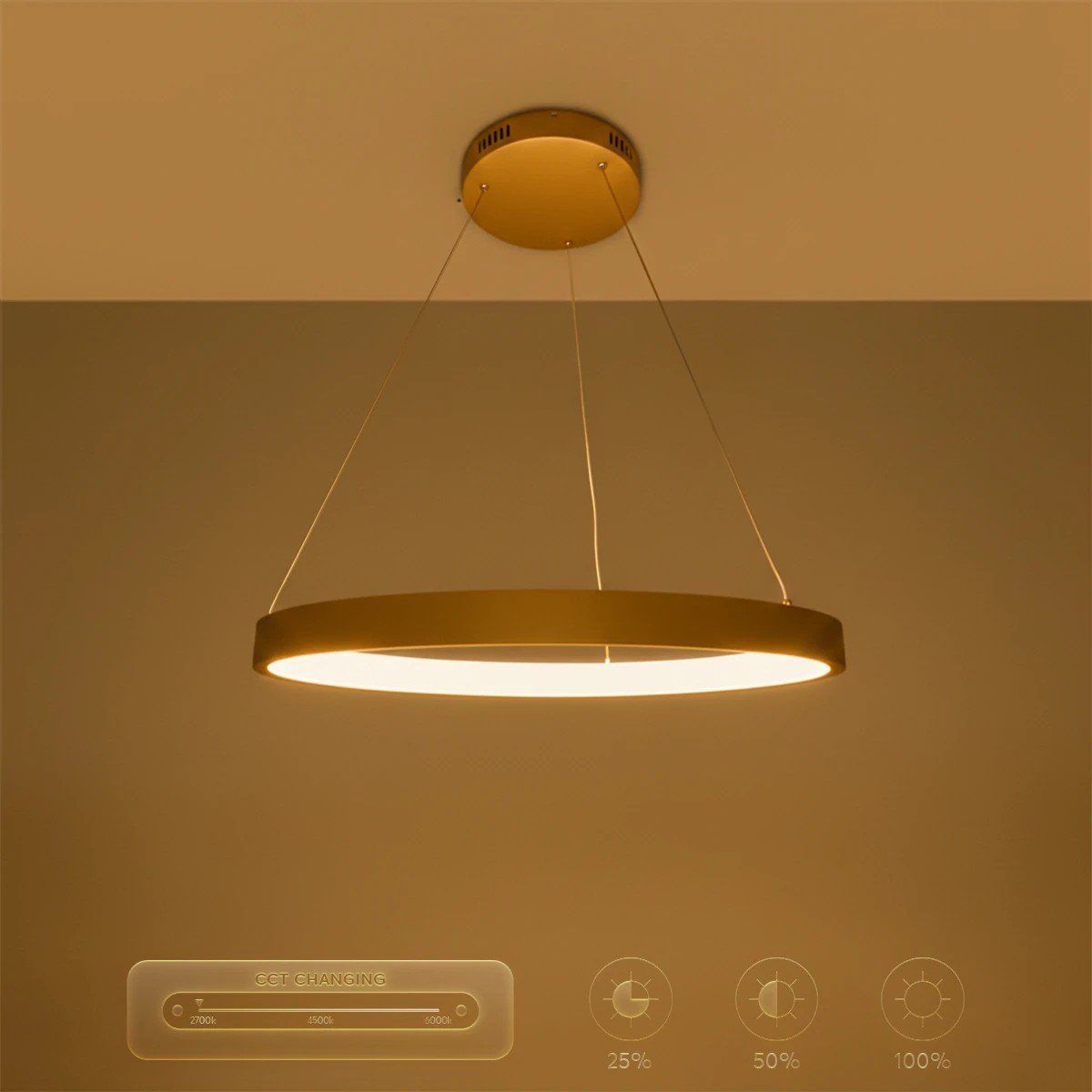 kelvo® NEMESIS KLV-101-0210 Κρεμαστό Φωτιστικό Οροφής LED 45W 4500lm 180° AC 220-240V IP20 Ρυθμιζόμενο Λευκό CCT με Χειριστήριο από 2700K έως 6000K Dimmable – Lumileds SMD Chip – Χρυσό Πλατίνα – Μ60 x Π60 x Υ4cm – 3 Χρόνια Εγγύηση