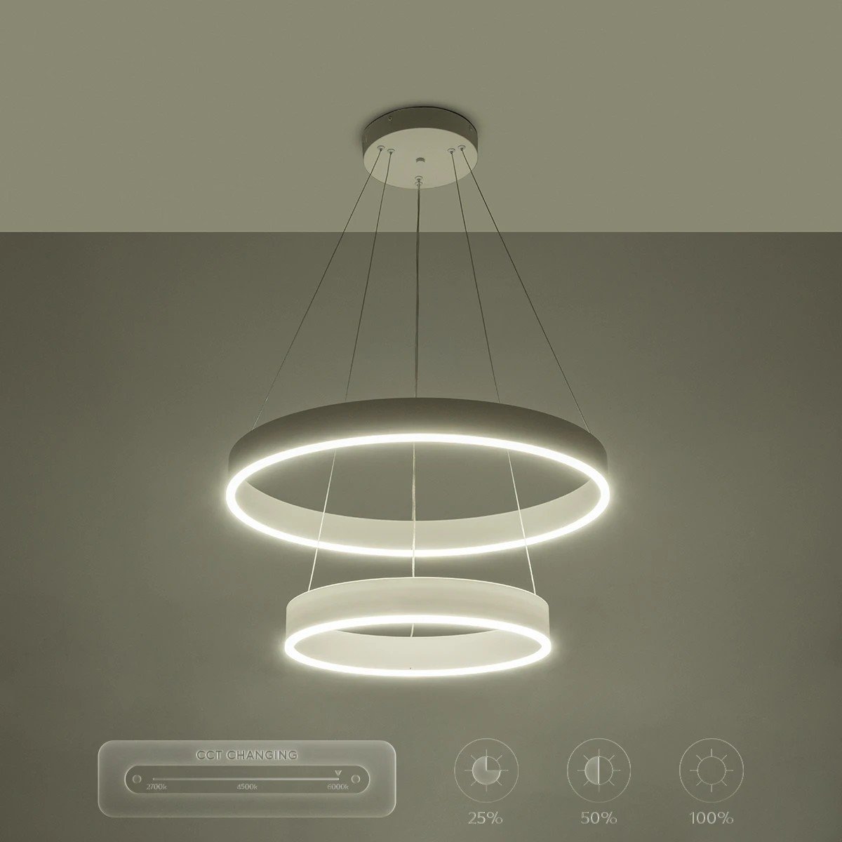kelvo® VENOM 61186-DECO Μοντέρνο Κρεμαστό Φωτιστικό Οροφής LED 75W 8818lm 120° AC 220-240V IP20 Ρυθμιζόμενο Λευκό CCT με Χειριστήριο από 2700K έως 6000K Dimmable – Lumileds SMD Chip – Λευκό Ματ – Μ60 x Π60 x Υ40cm – 3 Χρόνια Εγγύηση