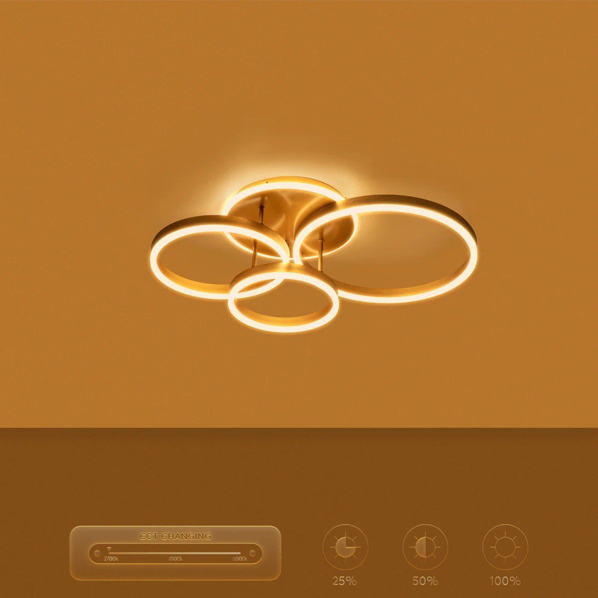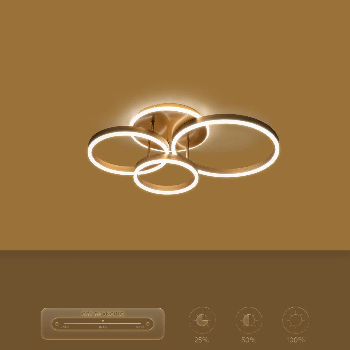 kelvo® VENOM KLV-101-0186 Φωτιστικό Οροφής LED 100W 10000lm 360° AC 220-240V IP20 Ρυθμιζόμενο Λευκό CCT με Χειριστήριο από 2700K έως 6000K Dimmable – Lumileds SMD Chip – Χρυσό Πλατίνα – Μ70 x Π40 x Υ16cm – 3 Χρόνια Εγγύηση