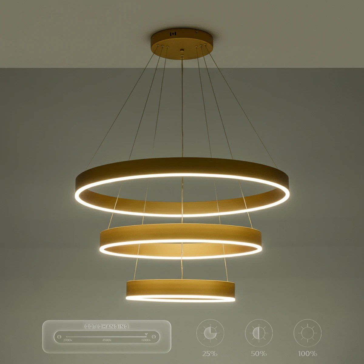 kelvo® VENOM KLV-101-0201 Κρεμαστό Φωτιστικό Οροφής LED 120W 12000lm 120° AC 220-240V IP20 Ρυθμιζόμενο Λευκό CCT με Χειριστήριο από 2700K έως 6000K Dimmable – Lumileds SMD Chip – Χρυσό Πλατίνα – Μ80 x Π80 x Υ80cm – 3 Χρόνια Εγγύηση