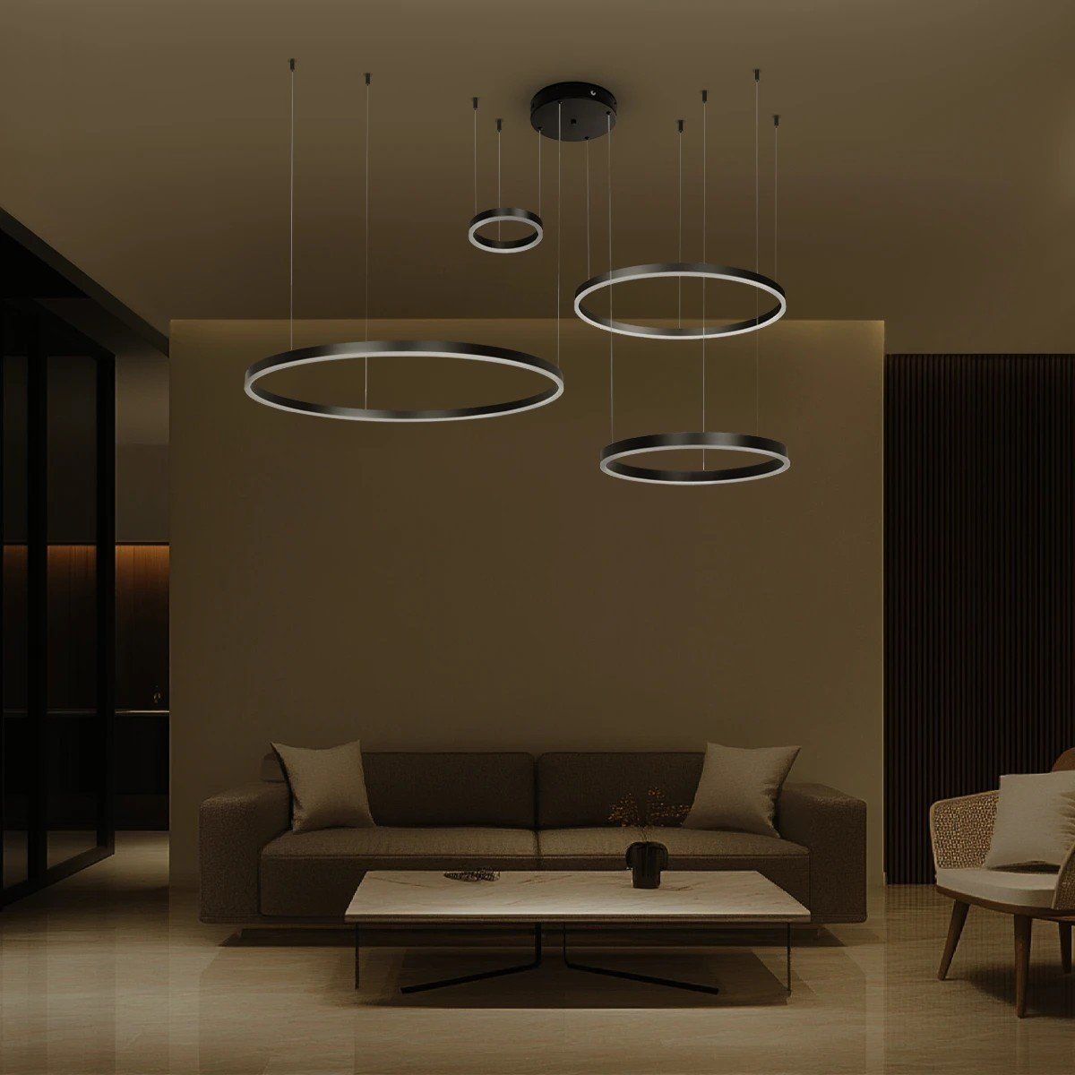 kelvo® VENOM KLV-101-0202 Κρεμαστό Φωτιστικό Οροφής LED 150W 15000lm 120° AC 220-240V IP20 Ρυθμιζόμενο Λευκό CCT με Χειριστήριο από 2700K έως 6000K Dimmable – Lumileds SMD Chip – Μαύρο Ματ – Μ150 x Π90 x Υ60cm – 3 Χρόνια Εγγύηση