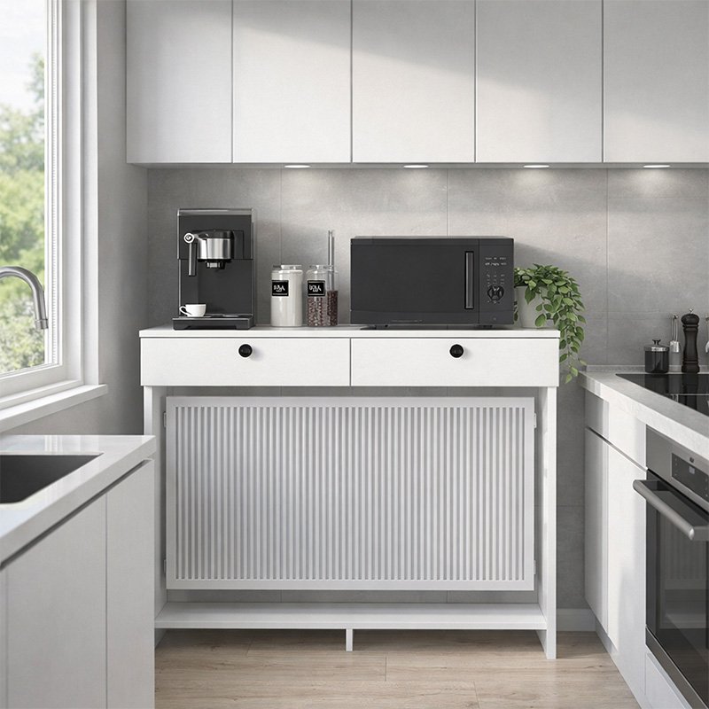 Το έπιπλο Opelya αποτελεί μια έξυπνη λύση που αναβαθμίζει αισθητικά τον χώρο χωρίς να εμποδίζει τη λειτουργία του σώματος θέρμανσης. Με λιτό και σύγχρονο σχεδιασμό, προσφέρει επιπλέον επιφάνεια οργάνωσης, διατηρώντας τον χώρο τακτοποιημένο και καλαίσθητο.