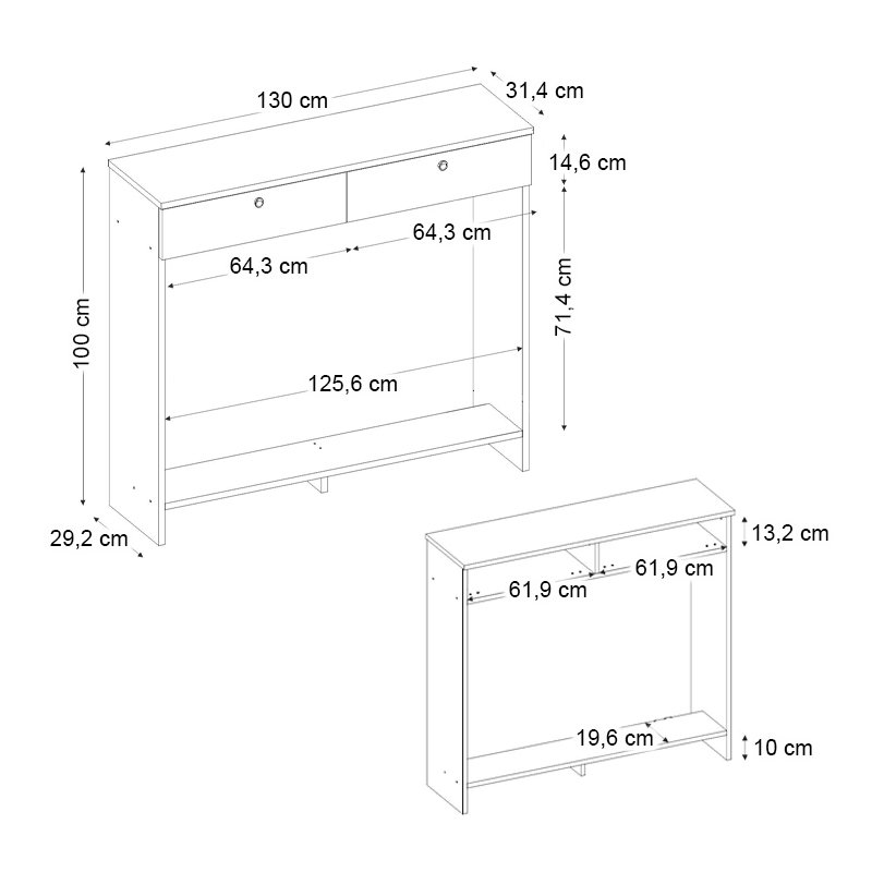 • Διαστάσεις: Μήκος 130 x Βάθος 31,4 x Ύψος 100 εκ.