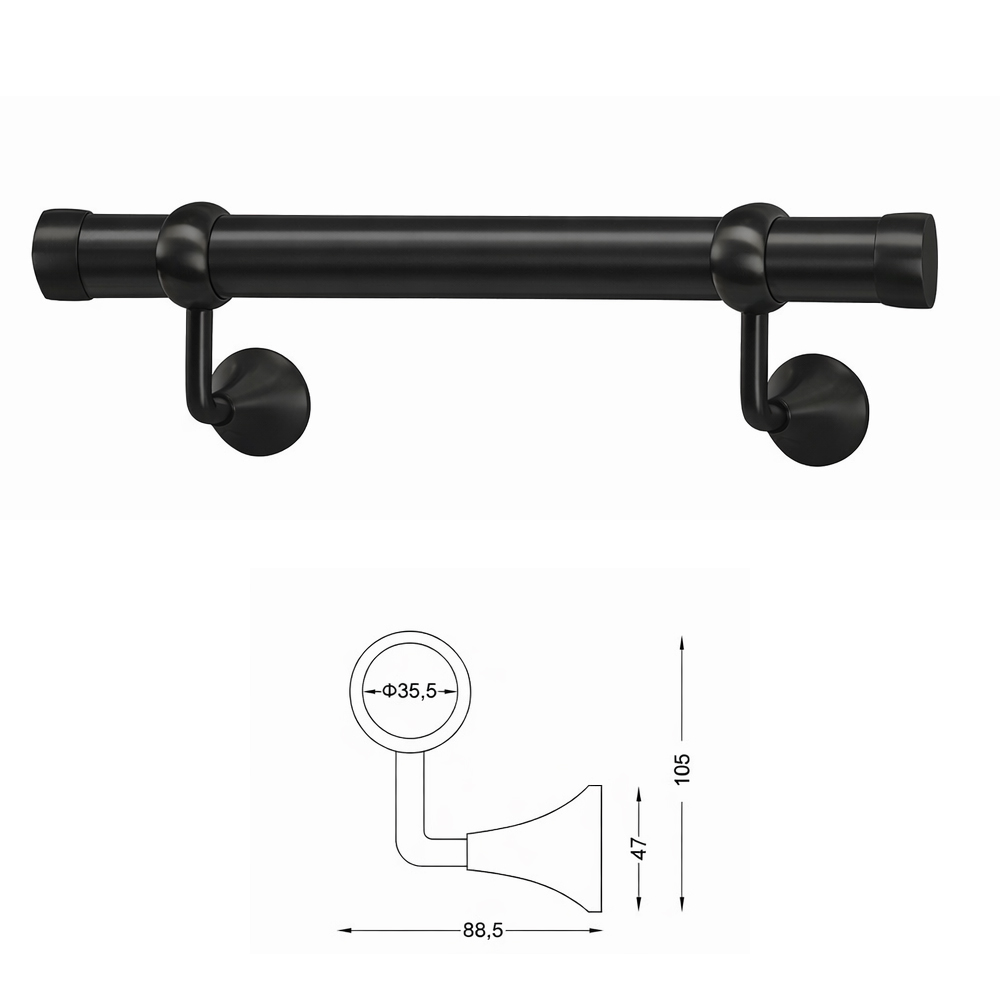 Κουπαστή Τοίχου Φ35 Μαύρη με Στηρίγματα