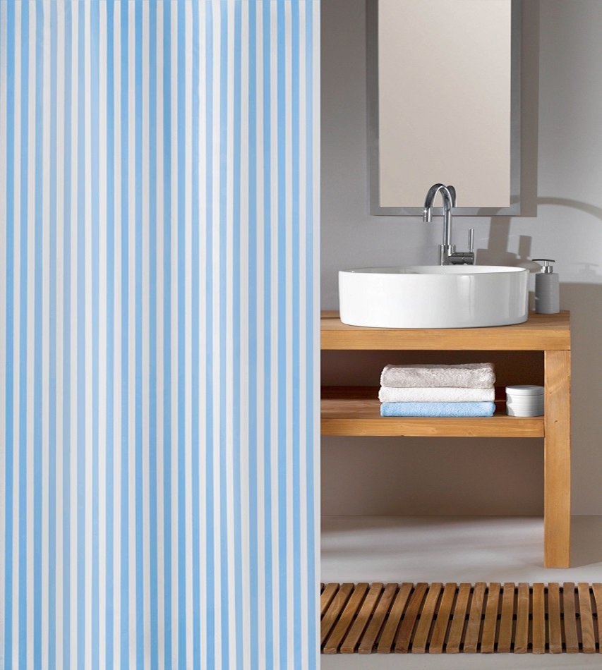 Κλασσική ριγέ υφασμάτινη κουρτίνα απο έναν από τους κορυφαίους κατασκευαστές ειδών μπανιου στην Eυρώπη.