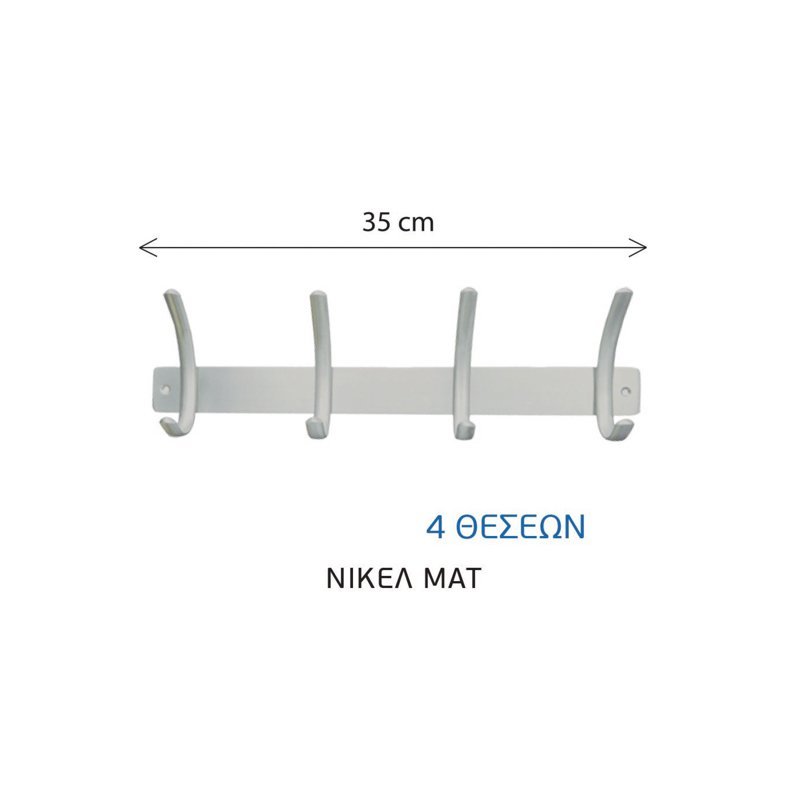Κρεμάστρα Τοίχου Μεταλλική 4 Θέσεων Νικέλ ματ 1003