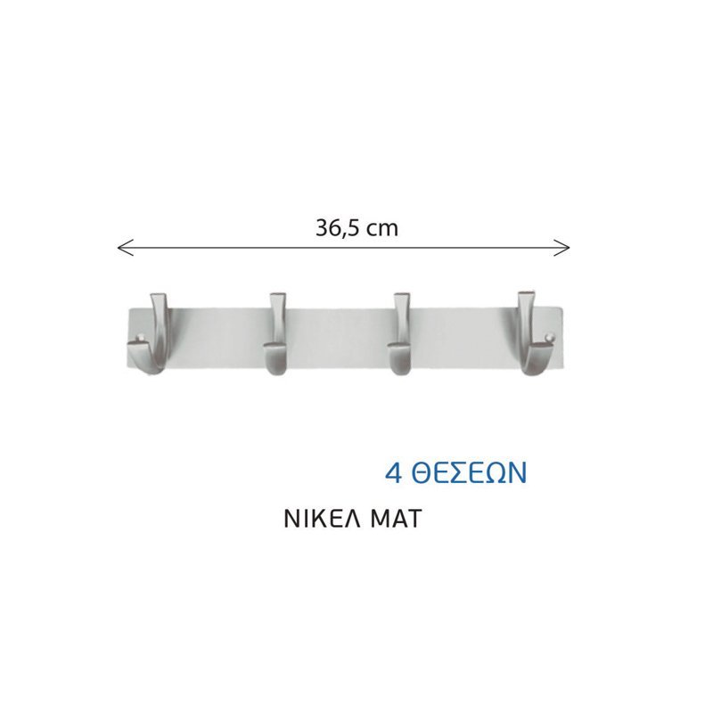 Κρεμάστρα Τοίχου Μεταλλική 4 Θέσεων Νικέλ ματ 31063
