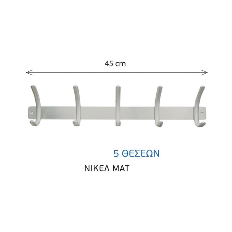 Κρεμάστρα Τοίχου Μεταλλική 5 Θέσεων Νικέλ ματ 1003