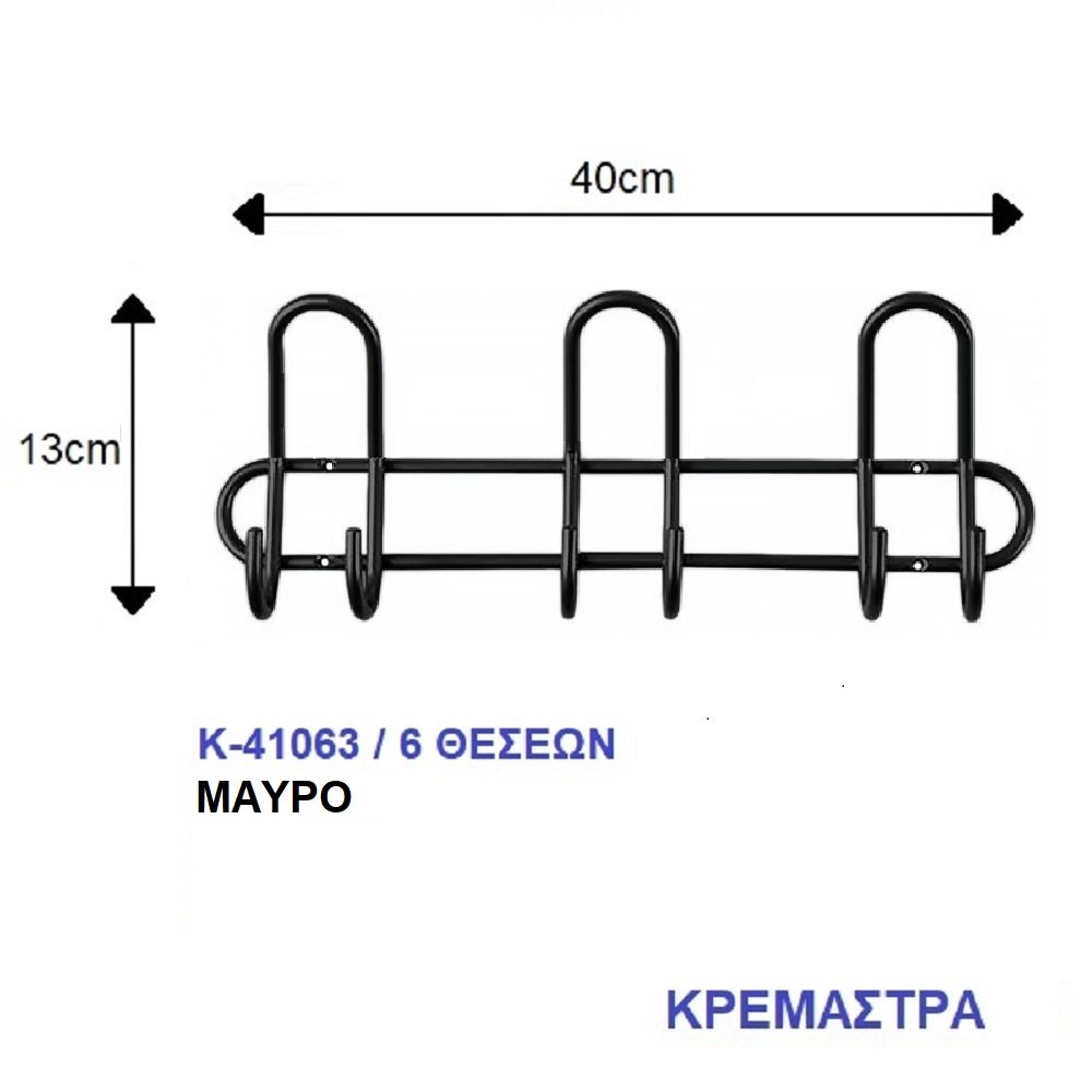 Κρεμάστρα Τοίχου Μεταλλική 6 Θέσεων Μαύρο