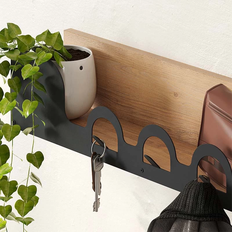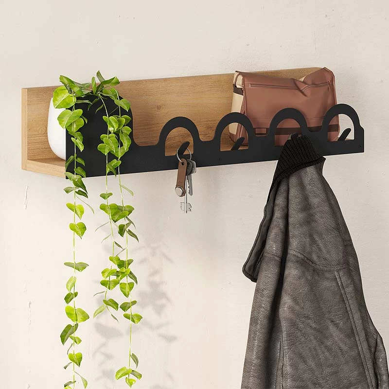 Κρεμάστρα τοίχου Ξύλο με μαύρο μέταλλο