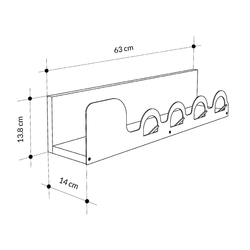 Διαστάσεις: Μήκος 63 x Βάθος 14 x Ύψος 14 εκ.