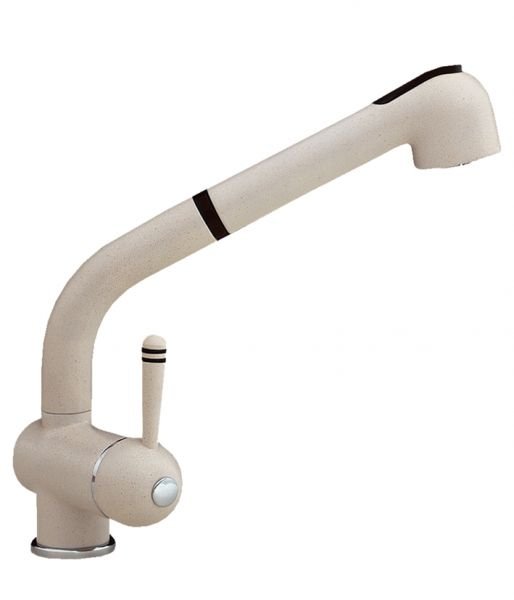 Αναμεικτική μπαταρία νεροχύτη ψηλή με σπιράλ και ντους, σε χρώμα γρανιτη/μπεζ.