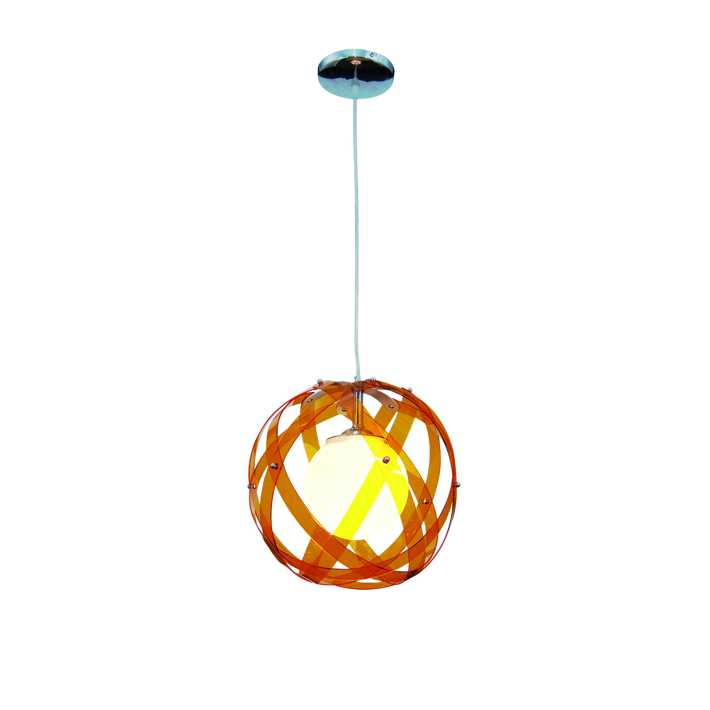 Μπάλα με plexi-glass σε πορτοκαλί, φούξια, μπλέ, λαχανί, λευκό. Ανάρτηση από χρώμιο.