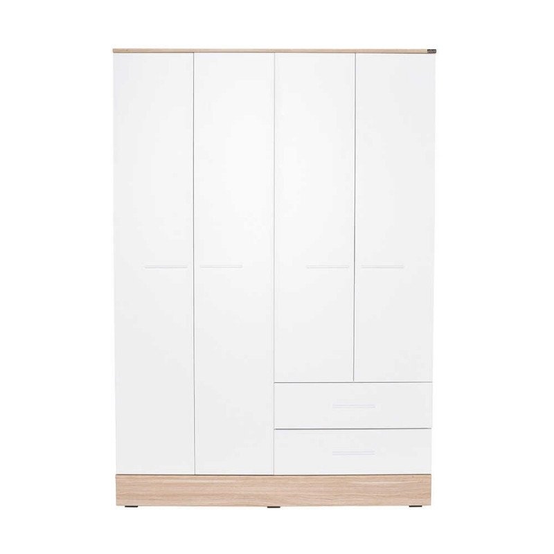 Ντουλάπα ρούχων Base Megapap τετράφυλλη με συρτάρια χρώμα λευκό – sonoma 137x52x198εκ.