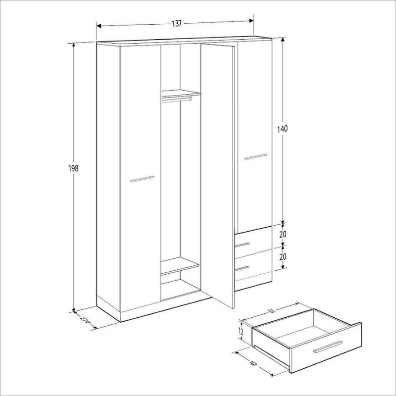 - Διαστάσεις: Μήκος 137 x Βάθος 52 x Ύψος 198 εκ.