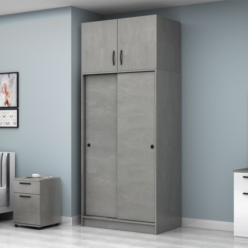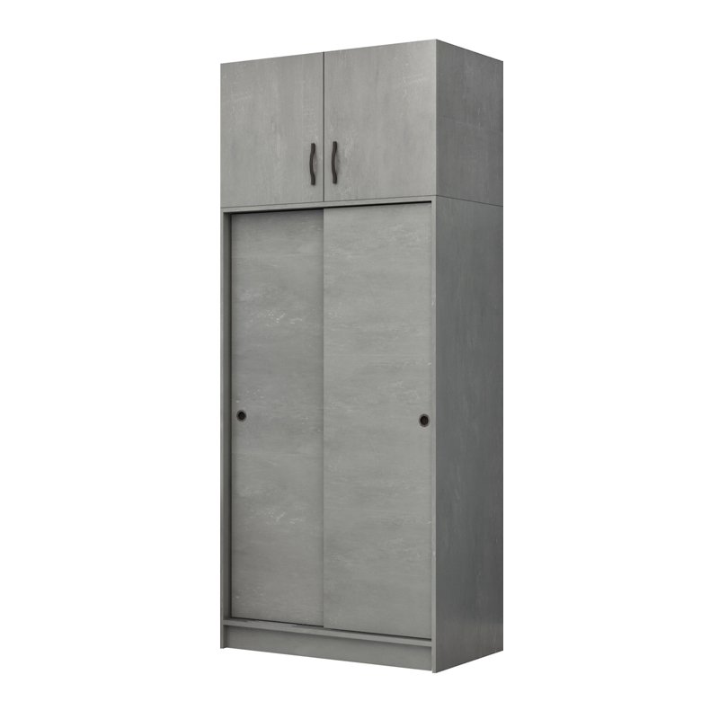 Ντουλάπα ρούχων Regio Megapap δίφυλλη συρόμενη με πατάρι χρώμα γκρι σκυροδέματος 100x60x240εκ.