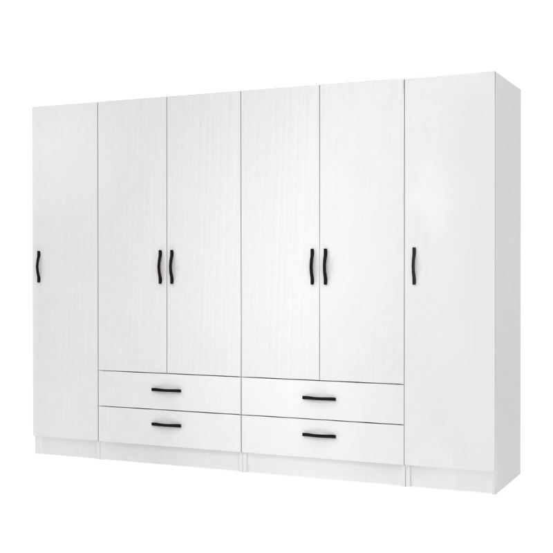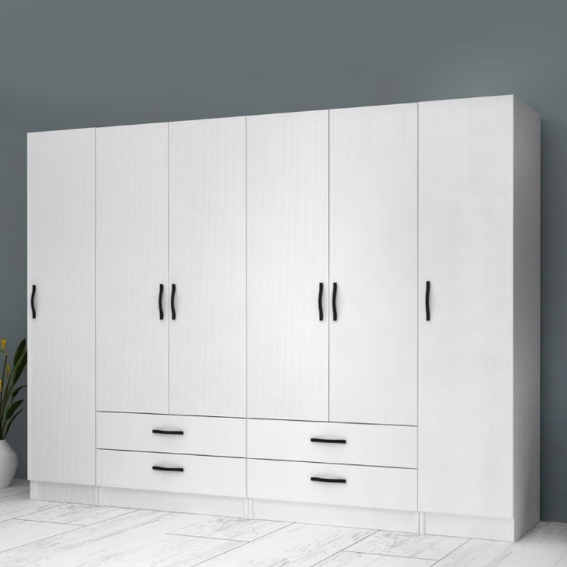 Ντουλάπα ρούχων Ricardo Megapap εξάφυλλη με συρτάρια χρώμα λευκό 240×51,8×181εκ.