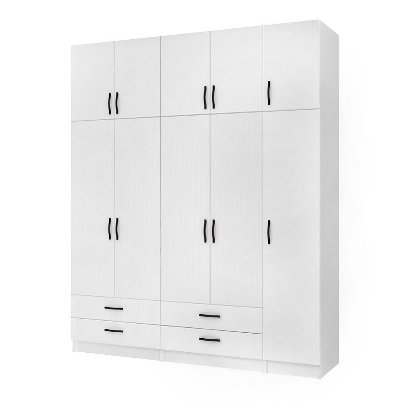 Ντουλάπα ρούχων Ricardo Megapap πεντάφυλλη με πατάρι και συρτάρια χρώμα λευκό 200×51,8×240εκ.