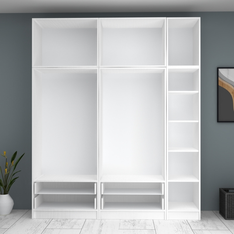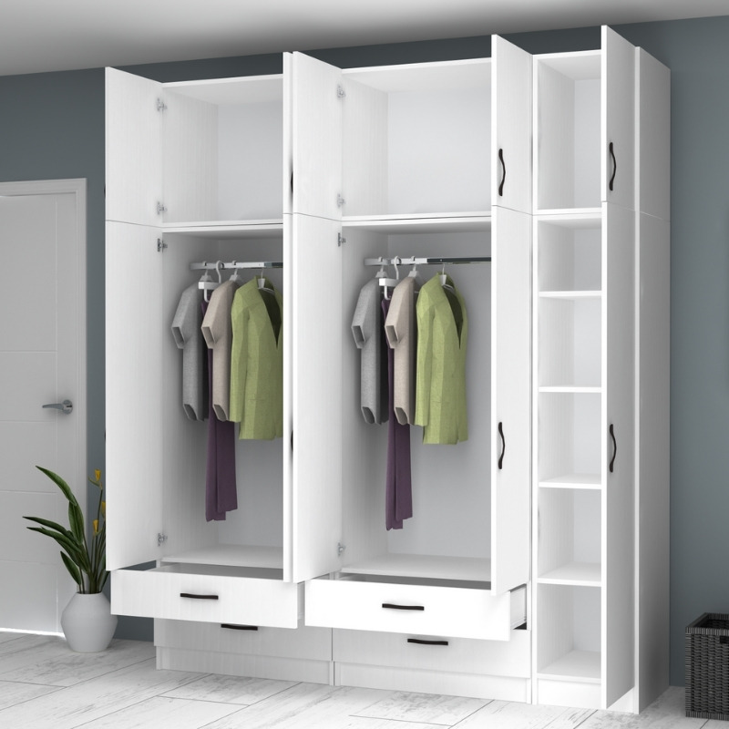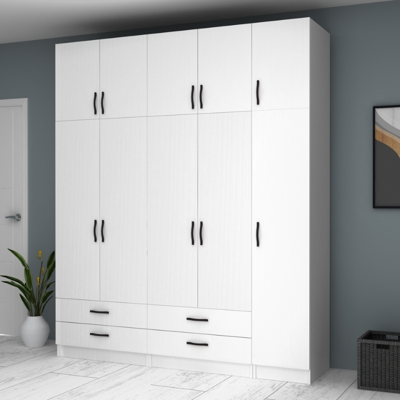 Ντουλάπα ρούχων Ricardo Megapap πεντάφυλλη με πατάρι και συρτάρια χρώμα λευκό 200×51,8×240εκ.