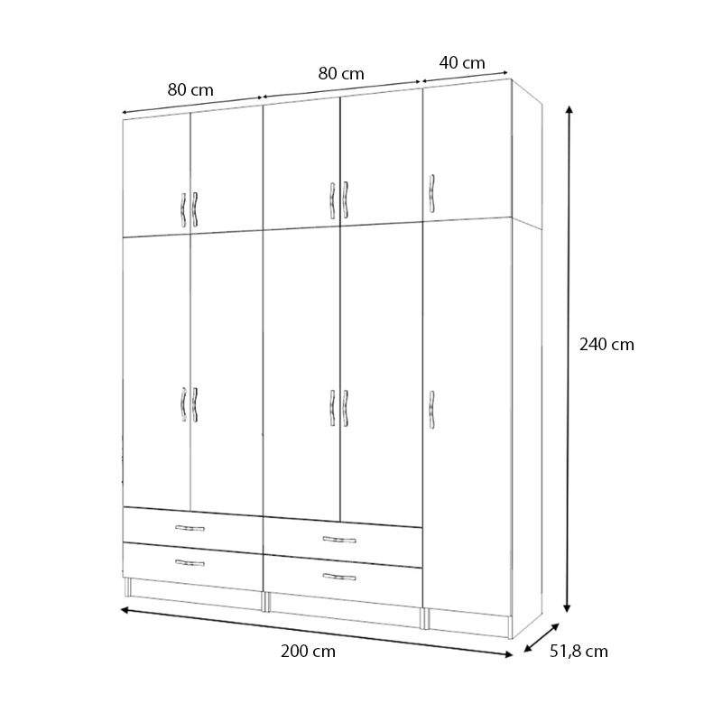 • Διαστάσεις ντουλάπας: Μήκος 200 x Βάθος 51,8 x Ύψος 240 εκ.