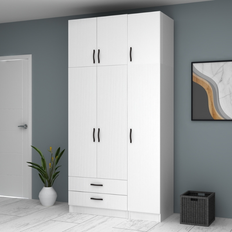 Ντουλάπα ρούχων Ricardo Megapap τρίφυλλη με πατάρι και συρτάρια χρώμα λευκό 120×51,8×240εκ.