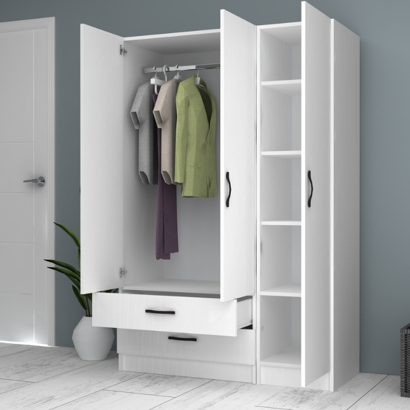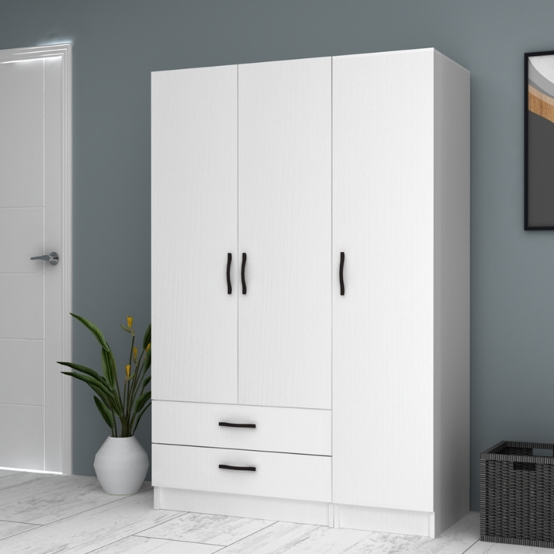 Ντουλάπα ρούχων Ricardo Megapap τρίφυλλη με συρτάρια χρώμα λευκό 120×51,8×181εκ.