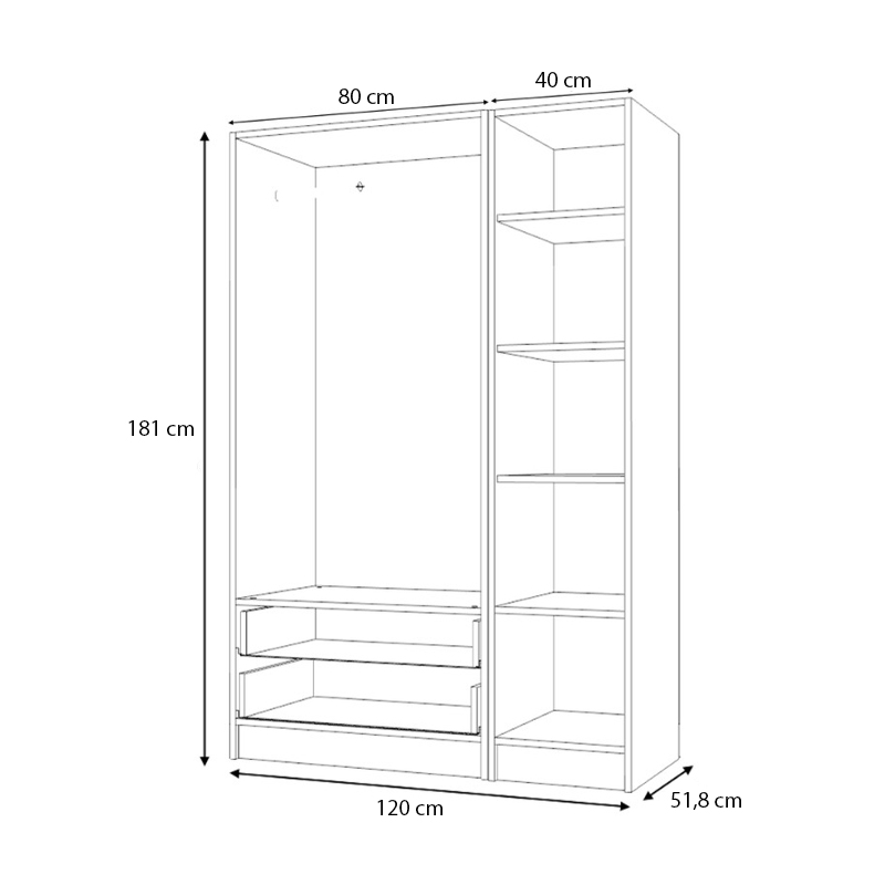 - Διαστάσεις ντουλάπας: Μήκος 120 x Βάθος 51,8 x Ύψος 181 εκ.