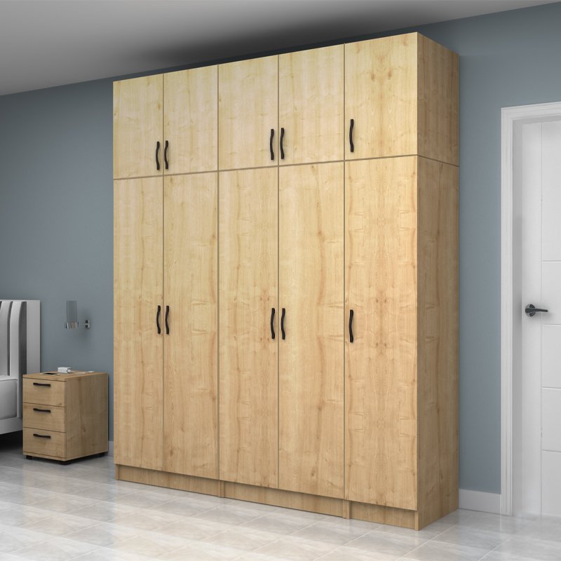 Ντουλάπα ρούχων Vivian Megapap πεντάφυλλη με πατάρι χρώμα φυσικό οξιάς 200×51,8×240εκ.