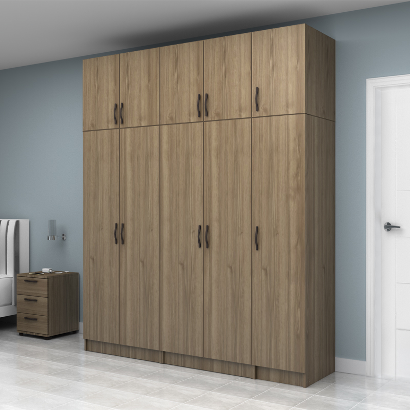 Ντουλάπα ρούχων Vivian Megapap πεντάφυλλη με πατάρι χρώμα καρυδί 200×51,8×240εκ.