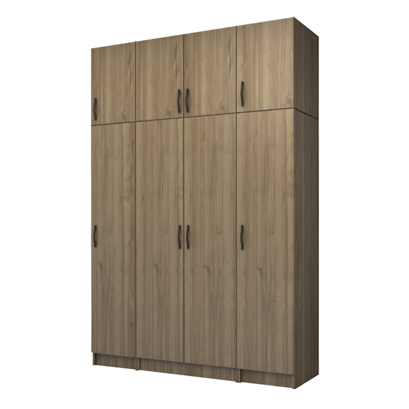 Ντουλάπα ρούχων Vivian Megapap τετράφυλλη με πατάρι χρώμα καρυδί 160×51,8×240εκ.