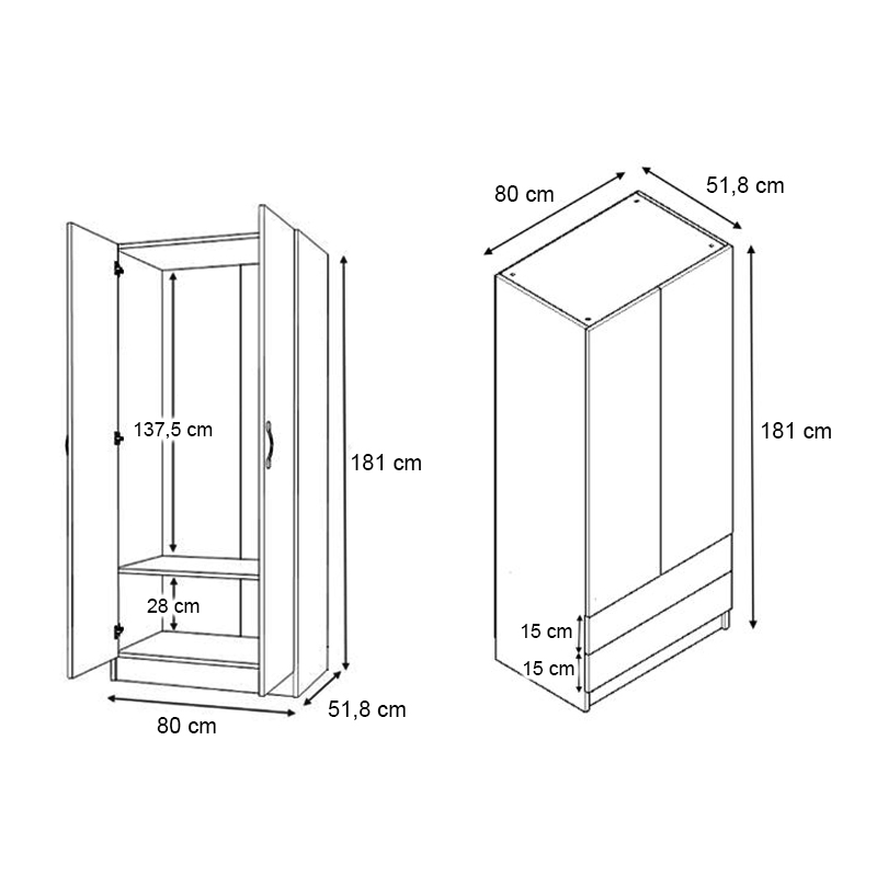 - Η ντουλάπα αποτελείται από τη δίφυλλη ντουλάπα με κωδικό GP028-0137,3 και τη δίφυλλη ντουλάπα με συρτάρια με κωδικό GP028-0109,3.