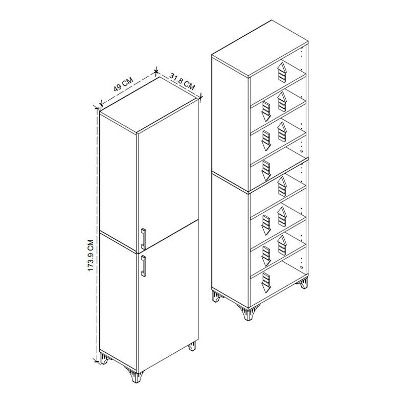 - Διαστάσεις: Μήκος 49 x Βάθος 31,8 x Ύψος 173,9 εκ.