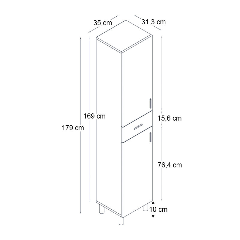 - Διαστάσεις: Μήκος 35 x Βάθος 31 x Ύψος 179 εκ.