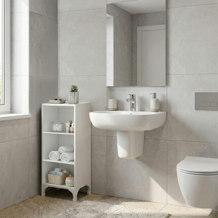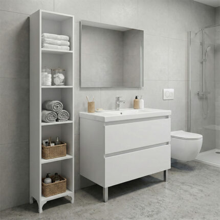 - Τα πόδια από ενισχυμένο πολυπροπυλένιο σε λευκή απόχρωση προσφέρουν αυξημένη αντοχή στην υγρασία και δημιουργούν απόσταση από το δάπεδο, συμβάλλοντας στη μακροχρόνια ανθεκτικότητα του επίπλου.