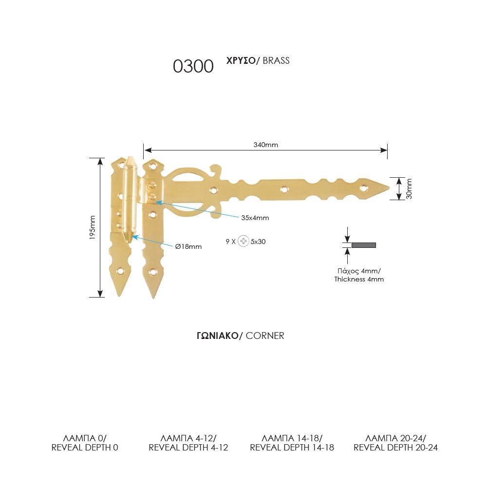 Ορειχάλκινο Μάσκουλο Γωνιακό Ζωγομετάλ 0300