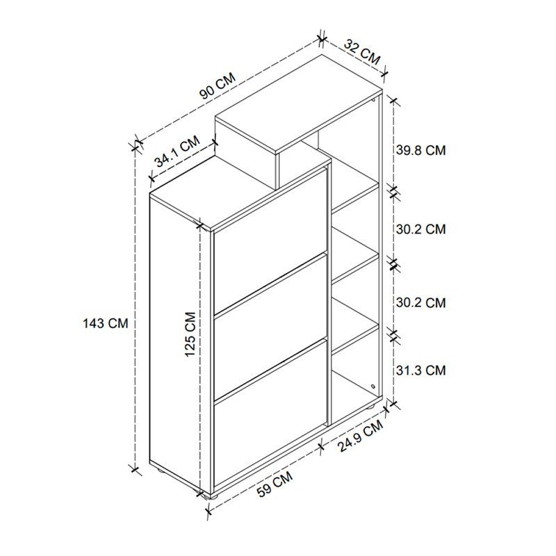 - Διαστάσεις: Μήκος 90 x Βάθος 32 x Ύψος 143 εκ.