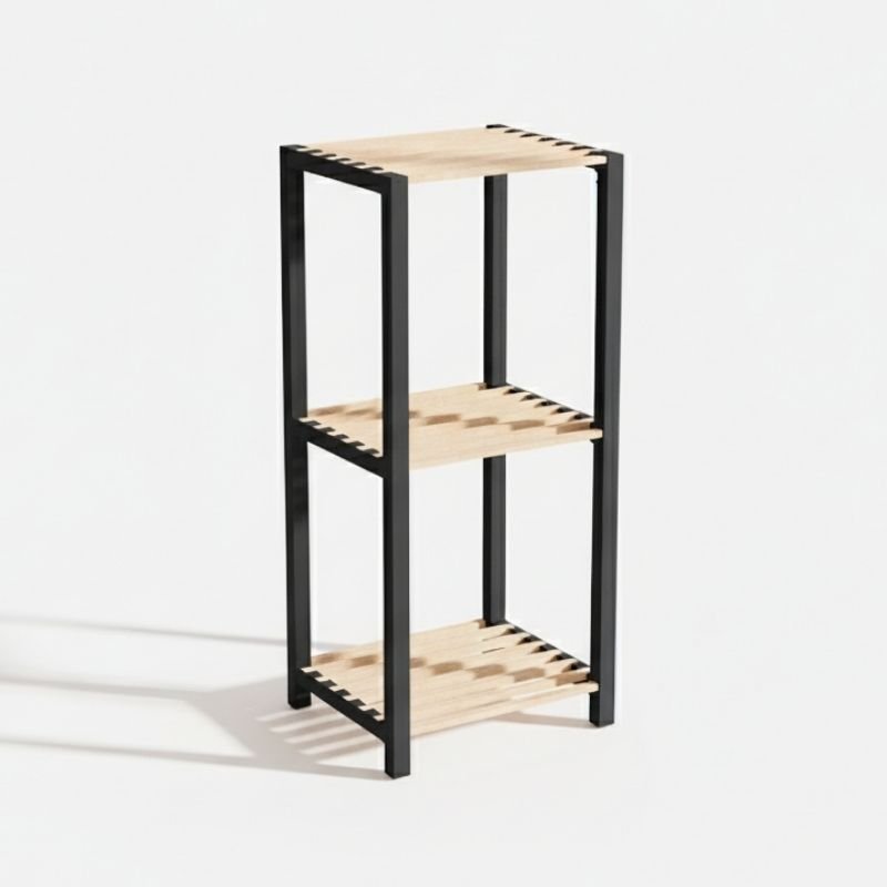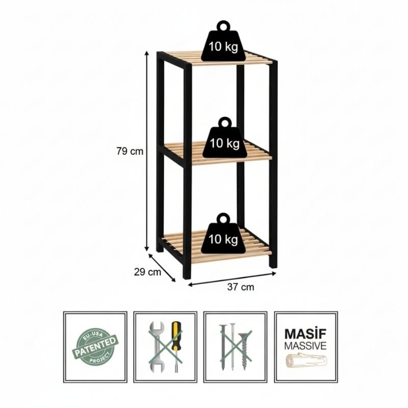 Ραφιέρα δαπέδου – Κομοδίνο ξύλινο – πλαστικό χρώμα φυσικό – μαύρο 37x29x79εκ.