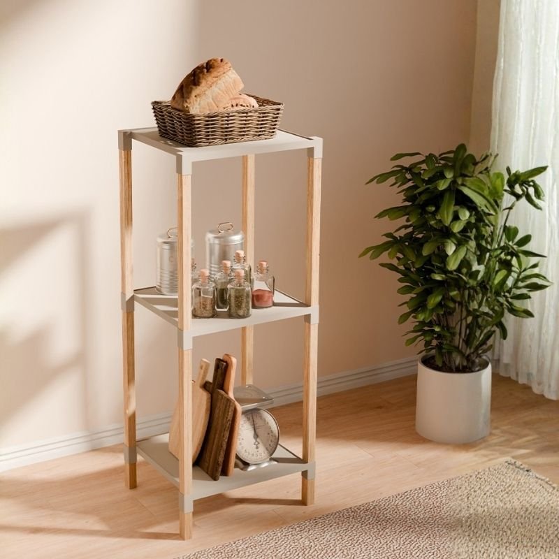 Ραφιέρα δαπέδου πλαστική – ξύλινη χρώμα φυσικό – μπεζ 28x25x72εκ.