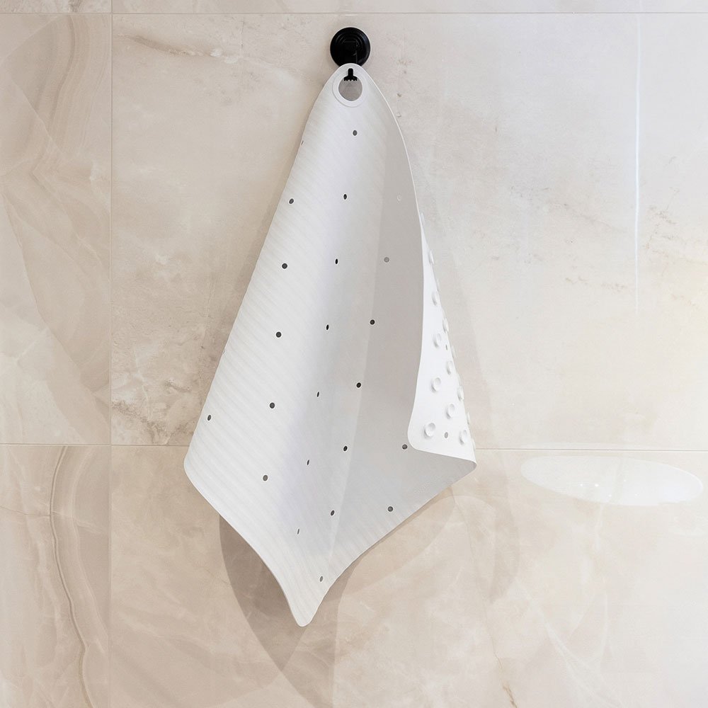 Αυτό το χαλάκι όχι μόνο φέρνει ασφάλεια στο μπάνιο σας, αλλά και άνεση. Το πρακτικό άγκιστρο εξασφαλίζει ότι μπορείτε εύκολα να κρεμάσετε το χαλάκι για να στεγνώσει. Οι στιβαρές βεντούζες στο κάτω μέρος εγγυώνται μεγαλύτερη σταθερότητα.