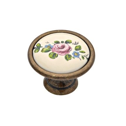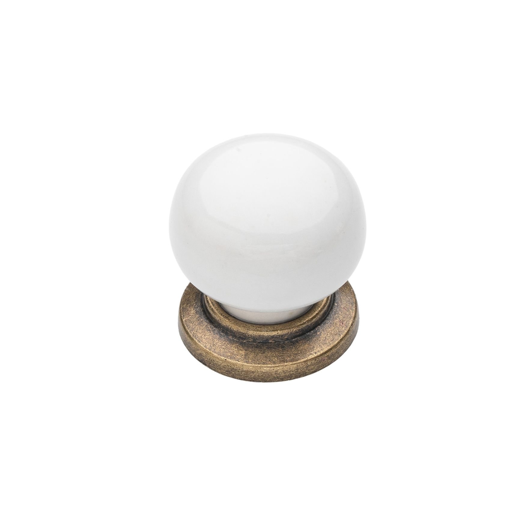Roline 519 Πόμολο Eπίπλου από Ζάμακ & Πορσελάνη Αντικέ-Λευκό Φ33mm