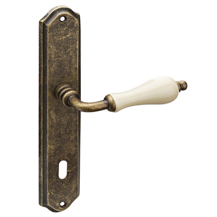 Roline Κ305 Πόμολο Εξώπορτας Φιξ Αριστερό από Ορείχαλκο & Πορσελάνη Αντικέ-Μπεζ 255x45x129mm