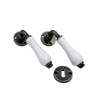 Ένα πόμολο πόρτας κορυφαίας ποιότητας με κλασικό design που ξεχωρίζει, σε χρώμα old silver. Είναι κατασκευασμένο από ορείχαλκο με μπεζ κρακελέ πορσελάνη και χαρακτηρίζεται για την κομψότητα και το φινίρισμά του.