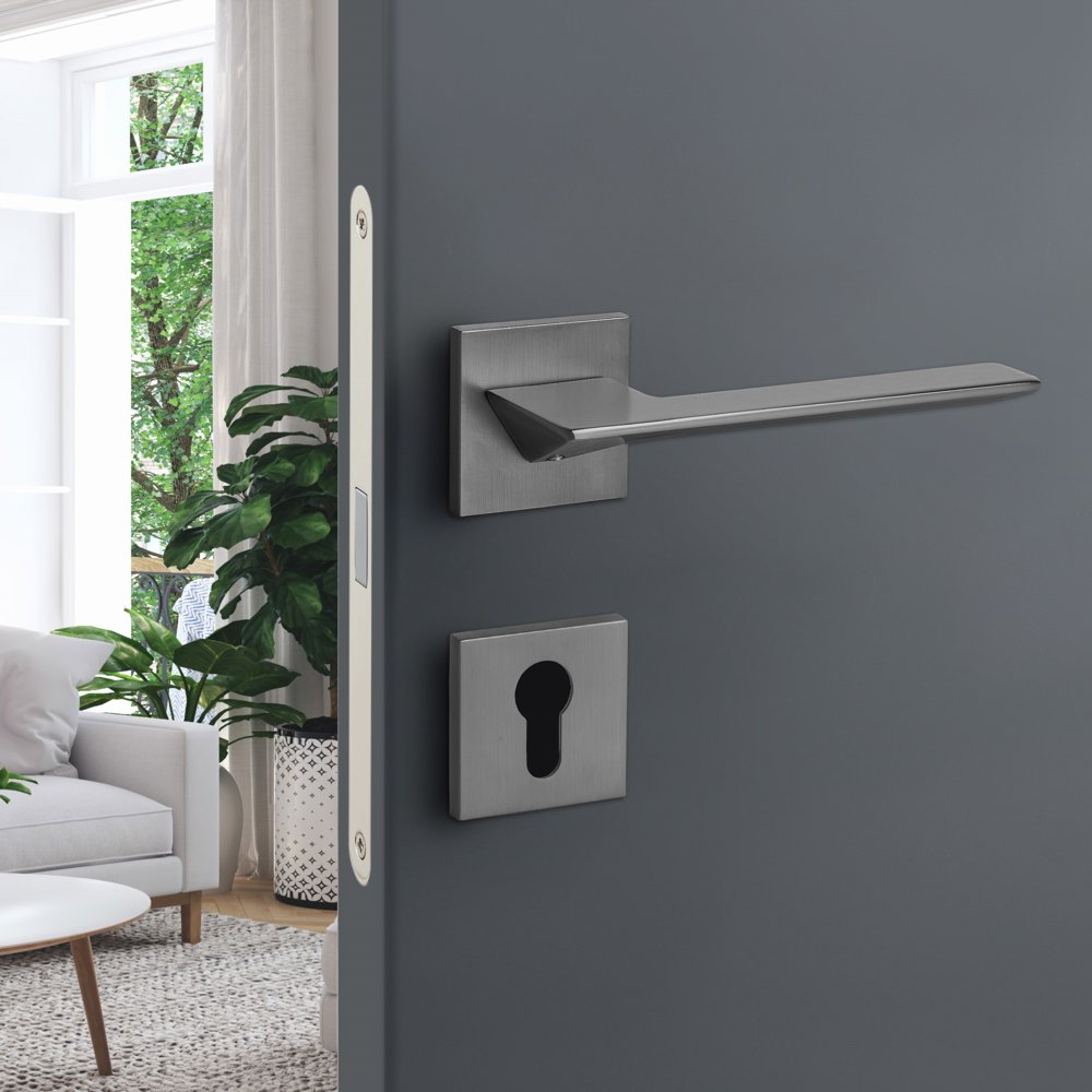 Ένα πόμολο πόρτας κορυφαίας ποιότητας με μοντέρνο design που ξεχωρίζει, σε χρώμα ανθρακί. Είναι κατασκευασμένο από ζάμακ υλικό και χαρακτηρίζεται για την κομψότητα και το φινίρισμά του.