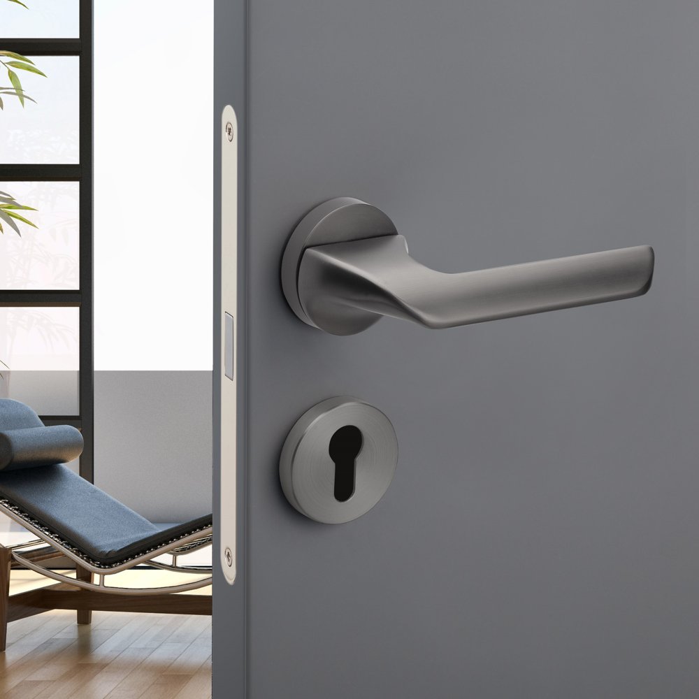 Roline Κ804 Πόμολο Πόρτας με Ροζέτα από Ζάμακ Γκρι Σατινέ Φ52x145mm