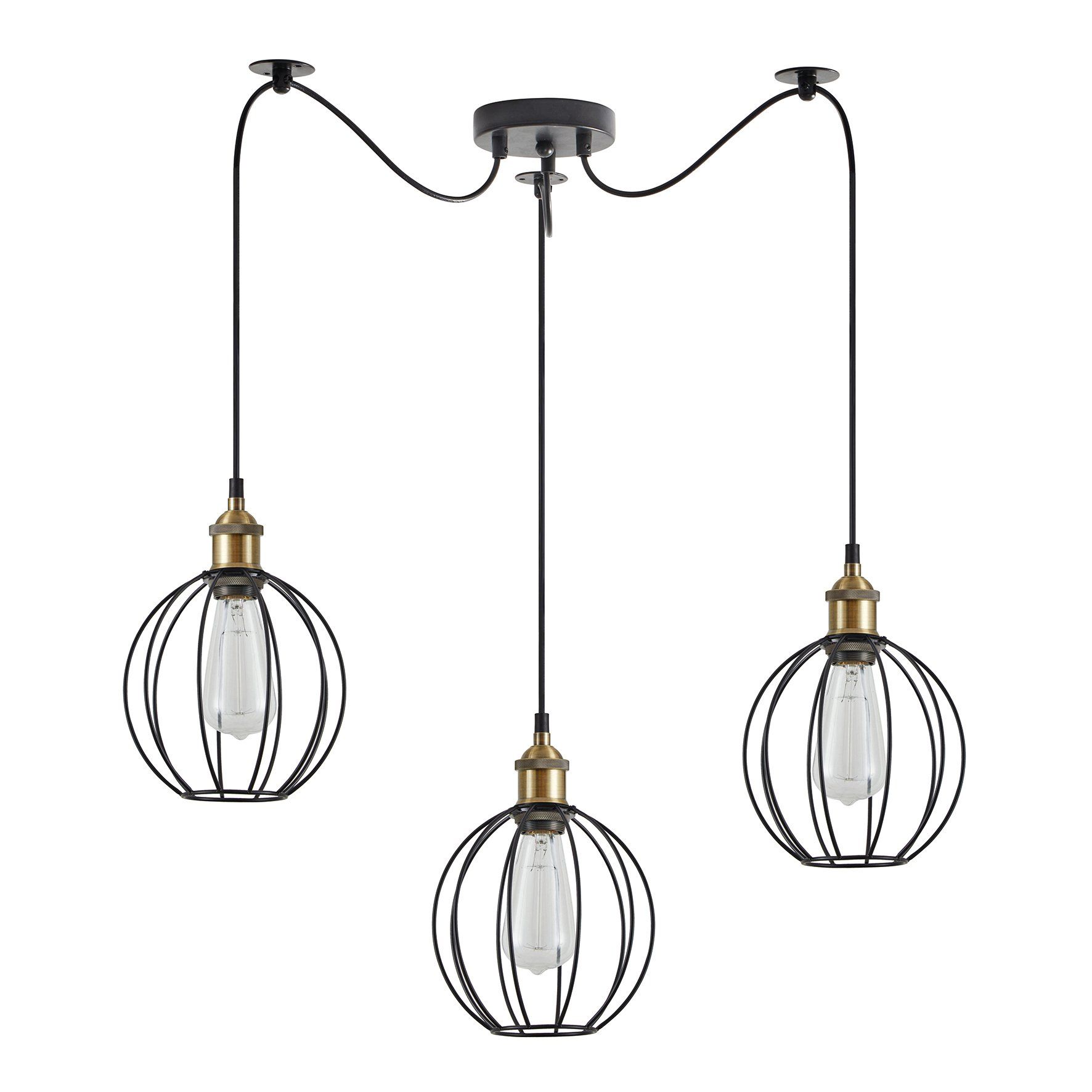 SE21-BR-10-BL3-GR2 MAGNUM Bronze Metal Pendant Black Metal Grid with Black Fabric Cable+