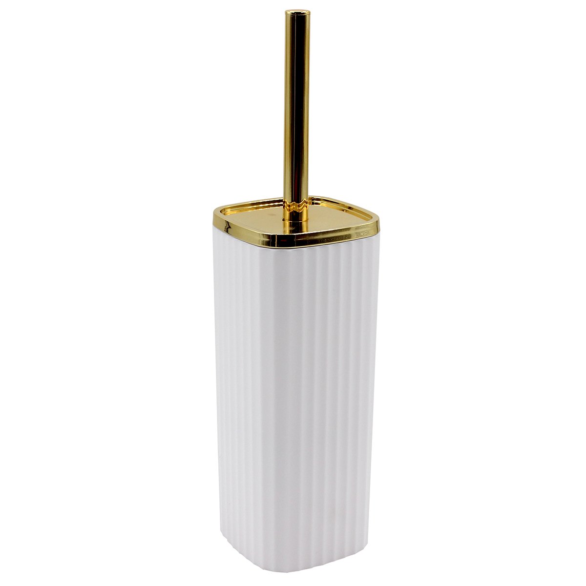 Ανανεώστε το μπάνιο σας με σετ κάδου 7Lt - 19Χ19Χ24cm & πιγκάλ - 9x9x36cm σε κομψό λευκό/χρυσό. Πρακτικό, πλαστικό, εύκολο στο καθάρισμα, με αιωρούμενο καπάκι για άνεση και υγιεινή.