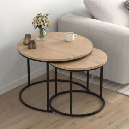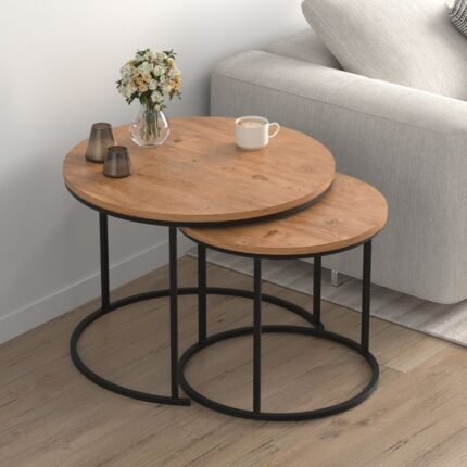 Σετ τραπεζάκια σαλονιού μελαμίνης Spline Megapap 2 τμχ. χρώμα καρυδί 80x40x46εκ.